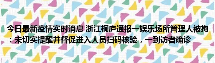 今日最新疫情实时消息 浙江桐庐通报一娱乐场所管理人被拘:未切实提醒并督促进入人员扫码核验,一到访者确诊