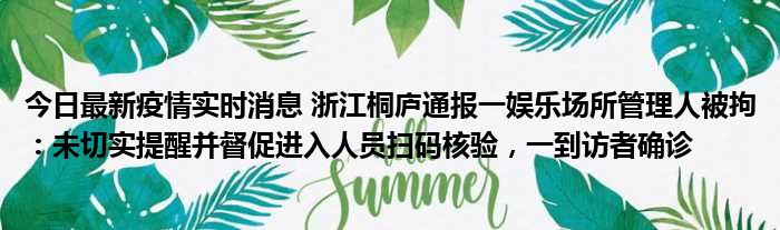 今日最新疫情实时消息 浙江桐庐通报一娱乐场所管理人被拘:未切实提醒并督促进入人员扫码核验,一到访者确诊