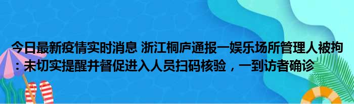 今日最新疫情实时消息 浙江桐庐通报一娱乐场所管理人被拘:未切实提醒并督促进入人员扫码核验,一到访者确诊