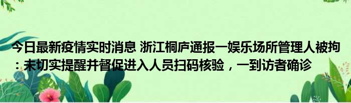 今日最新疫情实时消息 浙江桐庐通报一娱乐场所管理人被拘:未切实提醒并督促进入人员扫码核验,一到访者确诊
