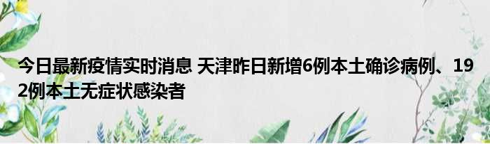 今日最新疫情实时消息 天津昨日新增6例本土确诊病例、192例本土无症状感染者