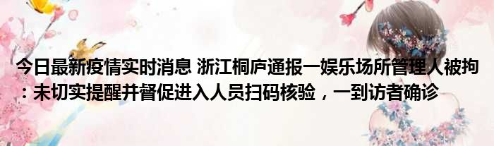 今日最新疫情实时消息 浙江桐庐通报一娱乐场所管理人被拘:未切实提醒并督促进入人员扫码核验,一到访者确诊
