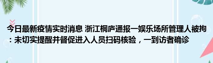 今日最新疫情实时消息 浙江桐庐通报一娱乐场所管理人被拘:未切实提醒并督促进入人员扫码核验,一到访者确诊