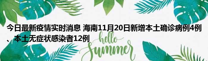 今日最新疫情实时消息 海南11月20日新增本土确诊病例4例、本土无症状感染者12例