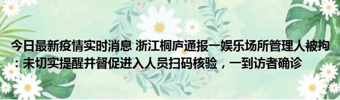 今日最新疫情实时消息 浙江桐庐通报一娱乐场所管理人被拘:未切实提醒并督促进入人员扫码核验,一到访者确诊
