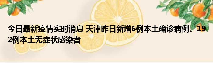 今日最新疫情实时消息 天津昨日新增6例本土确诊病例、192例本土无症状感染者