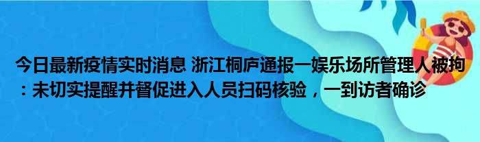 今日最新疫情实时消息 浙江桐庐通报一娱乐场所管理人被拘:未切实提醒并督促进入人员扫码核验,一到访者确诊