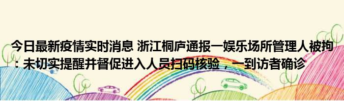 今日最新疫情实时消息 浙江桐庐通报一娱乐场所管理人被拘:未切实提醒并督促进入人员扫码核验,一到访者确诊