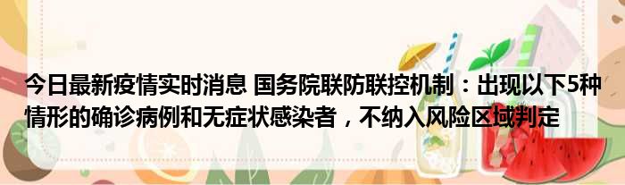 今日最新疫情实时消息 国务院联防联控机制:出现以下5种情形的确诊病例和无症状感染者,不纳入风险区域判定