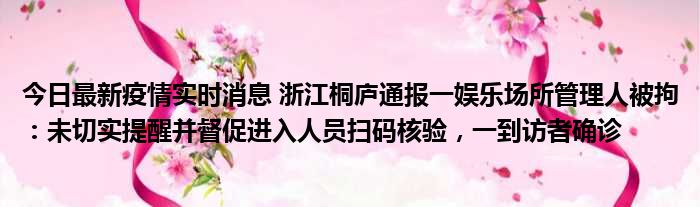 今日最新疫情实时消息 浙江桐庐通报一娱乐场所管理人被拘:未切实提醒并督促进入人员扫码核验,一到访者确诊