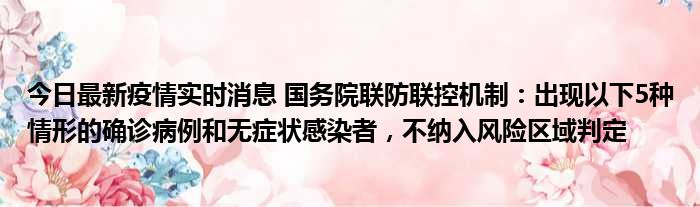 今日最新疫情实时消息 国务院联防联控机制:出现以下5种情形的确诊病例和无症状感染者,不纳入风险区域判定