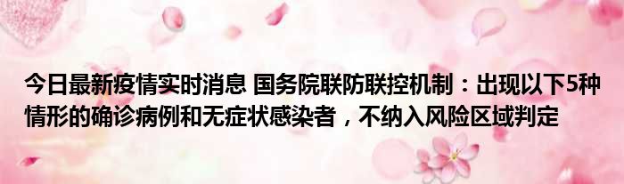今日最新疫情实时消息 国务院联防联控机制:出现以下5种情形的确诊病例和无症状感染者,不纳入风险区域判定