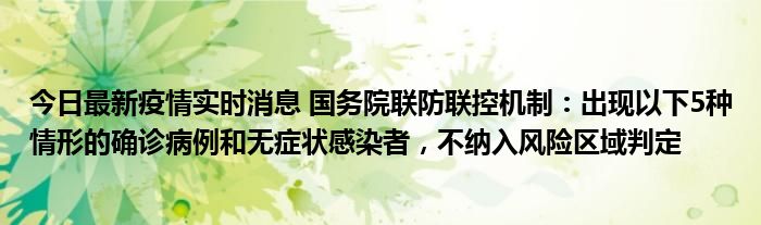 今日最新疫情实时消息 国务院联防联控机制:出现以下5种情形的确诊病例和无症状感染者,不纳入风险区域判定