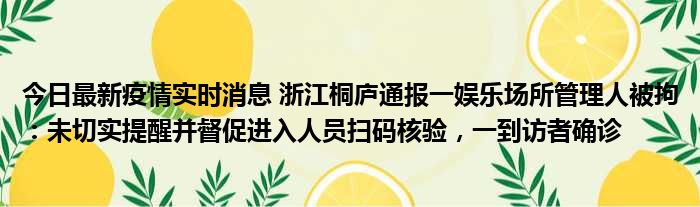 今日最新疫情实时消息 浙江桐庐通报一娱乐场所管理人被拘:未切实提醒并督促进入人员扫码核验,一到访者确诊