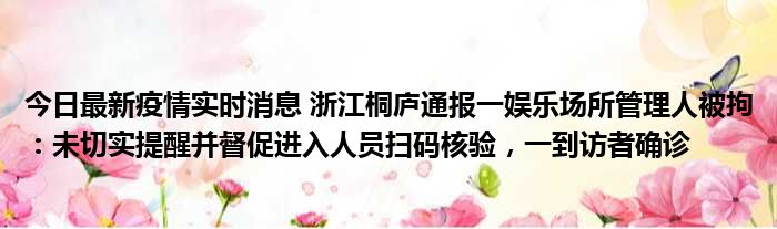 今日最新疫情实时消息 浙江桐庐通报一娱乐场所管理人被拘:未切实提醒并督促进入人员扫码核验,一到访者确诊
