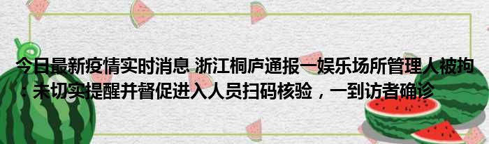 今日最新疫情实时消息 浙江桐庐通报一娱乐场所管理人被拘:未切实提醒并督促进入人员扫码核验,一到访者确诊