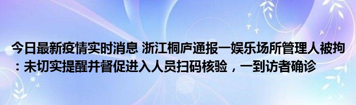 今日最新疫情实时消息 浙江桐庐通报一娱乐场所管理人被拘:未切实提醒并督促进入人员扫码核验,一到访者确诊