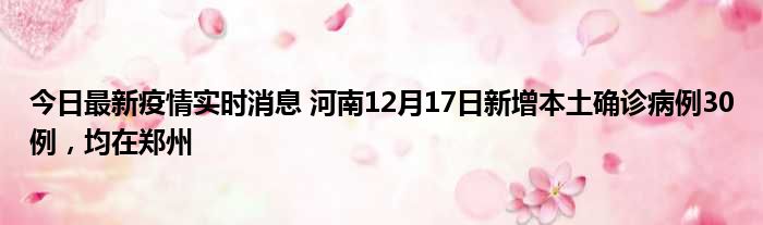 今日最新疫情实时消息 河南12月17日新增本土确诊病例30例,均在郑州