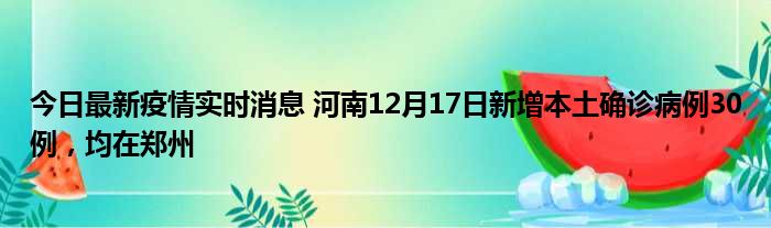 今日最新疫情实时消息 河南12月17日新增本土确诊病例30例,均在郑州