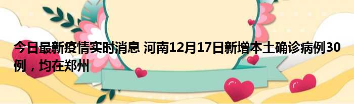 今日最新疫情实时消息 河南12月17日新增本土确诊病例30例,均在郑州