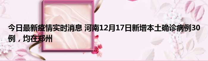 今日最新疫情实时消息 河南12月17日新增本土确诊病例30例,均在郑州