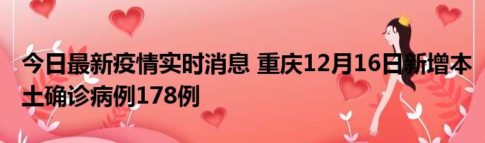 重庆卫健委通报,12月16日0—24时,全市报告新增本土确诊病例178例,治愈出院本土确诊病例121例