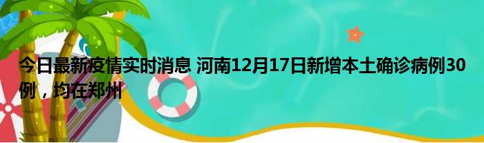 今日最新疫情实时消息 河南12月17日新增本土确诊病例30例,均在郑州
