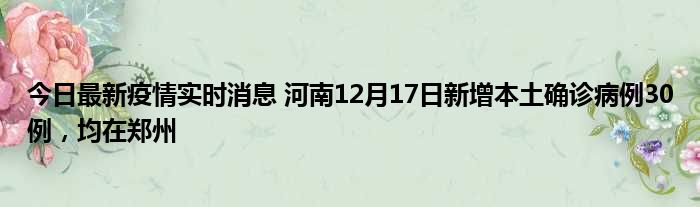 今日最新疫情实时消息 河南12月17日新增本土确诊病例30例,均在郑州