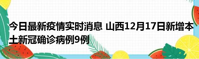山西卫健委通报,2022年12月17日0-24时,山西省新增本土新冠肺炎确诊病例9例(晋城市城区1例;朔州市朔城区1例;运城市盐湖区2例;忻州市