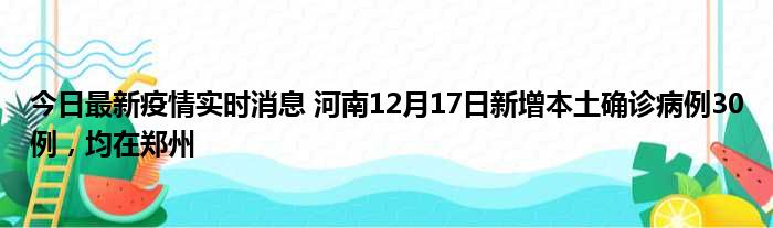 今日最新疫情实时消息 河南12月17日新增本土确诊病例30例,均在郑州
