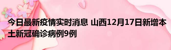 山西卫健委通报,2022年12月17日0-24时,山西省新增本土新冠肺炎确诊病例9例(晋城市城区1例;朔州市朔城区1例;运城市盐湖区2例;忻州市