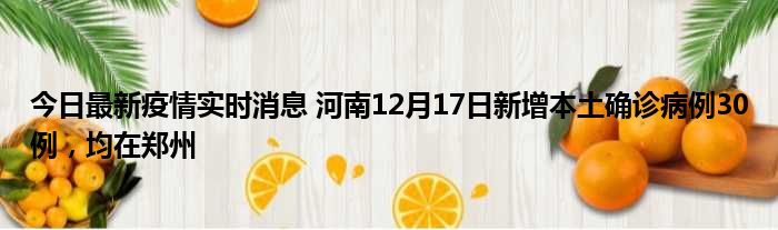 今日最新疫情实时消息 河南12月17日新增本土确诊病例30例,均在郑州