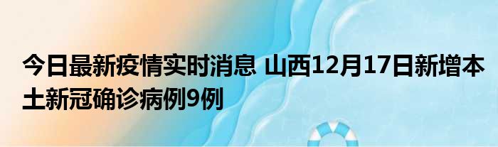 山西卫健委通报,2022年12月17日0-24时,山西省新增本土新冠肺炎确诊病例9例(晋城市城区1例;朔州市朔城区1例;运城市盐湖区2例;忻州市