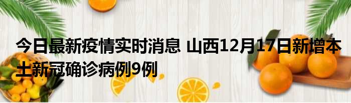 山西卫健委通报,2022年12月17日0-24时,山西省新增本土新冠肺炎确诊病例9例(晋城市城区1例;朔州市朔城区1例;运城市盐湖区2例;忻州市