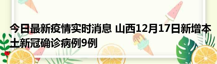 山西卫健委通报,2022年12月17日0-24时,山西省新增本土新冠肺炎确诊病例9例(晋城市城区1例;朔州市朔城区1例;运城市盐湖区2例;忻州市