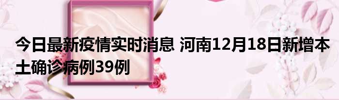 河南卫健委通报,12月18日0—24时,全省新增本土确诊病例39例(郑州市39例)无新增境外输入确诊病例18例本土确诊病例治愈出院(郑州市18例)