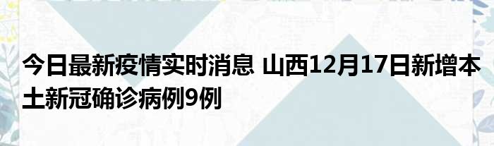 山西卫健委通报,2022年12月17日0-24时,山西省新增本土新冠肺炎确诊病例9例(晋城市城区1例;朔州市朔城区1例;运城市盐湖区2例;忻州市