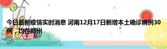 今日最新疫情实时消息 河南12月17日新增本土确诊病例30例,均在郑州