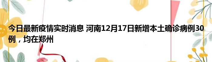 今日最新疫情实时消息 河南12月17日新增本土确诊病例30例,均在郑州