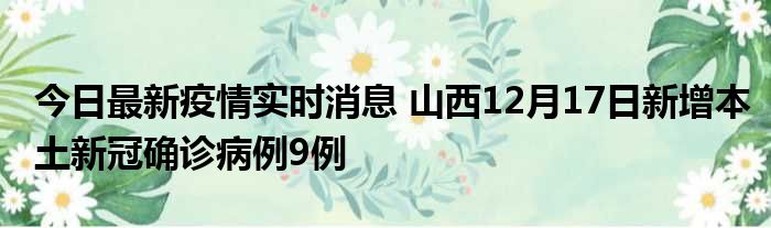 山西卫健委通报,2022年12月17日0-24时,山西省新增本土新冠肺炎确诊病例9例(晋城市城区1例;朔州市朔城区1例;运城市盐湖区2例;忻州市