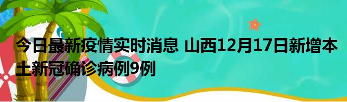 山西卫健委通报,2022年12月17日0-24时,山西省新增本土新冠肺炎确诊病例9例(晋城市城区1例;朔州市朔城区1例;运城市盐湖区2例;忻州市
