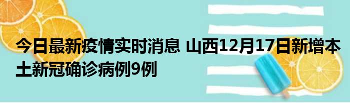山西卫健委通报,2022年12月17日0-24时,山西省新增本土新冠肺炎确诊病例9例(晋城市城区1例;朔州市朔城区1例;运城市盐湖区2例;忻州市