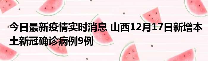 山西卫健委通报,2022年12月17日0-24时,山西省新增本土新冠肺炎确诊病例9例(晋城市城区1例;朔州市朔城区1例;运城市盐湖区2例;忻州市