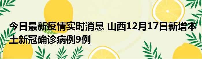 山西卫健委通报,2022年12月17日0-24时,山西省新增本土新冠肺炎确诊病例9例(晋城市城区1例;朔州市朔城区1例;运城市盐湖区2例;忻州市