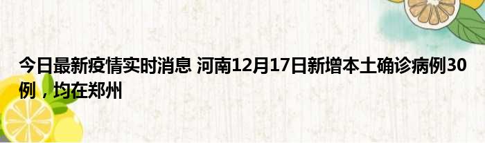 今日最新疫情实时消息 河南12月17日新增本土确诊病例30例,均在郑州