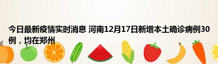 今日最新疫情实时消息 河南12月17日新增本土确诊病例30例,均在郑州
