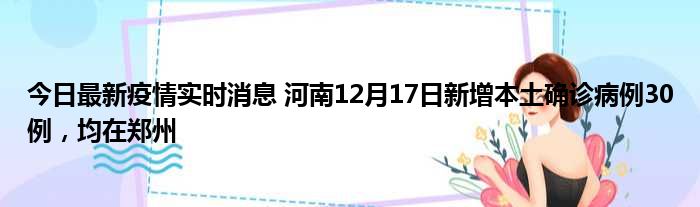 今日最新疫情实时消息 河南12月17日新增本土确诊病例30例,均在郑州