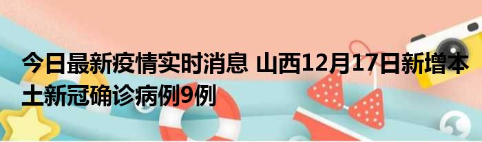 山西卫健委通报,2022年12月17日0-24时,山西省新增本土新冠肺炎确诊病例9例(晋城市城区1例;朔州市朔城区1例;运城市盐湖区2例;忻州市