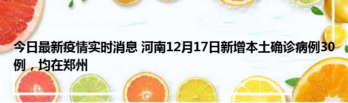 今日最新疫情实时消息 河南12月17日新增本土确诊病例30例,均在郑州