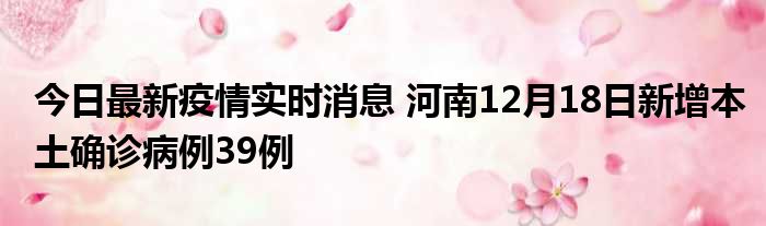 河南卫健委通报,12月18日0—24时,全省新增本土确诊病例39例(郑州市39例)无新增境外输入确诊病例18例本土确诊病例治愈出院(郑州市18